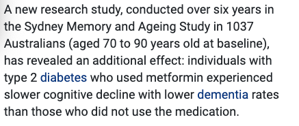 但是该研究所在最近一项研究中惊喜发现,治疗2型糖尿病的常见药物——二甲双胍,不仅能控制2型糖尿病患者体内的血糖水平,居然还能帮助他们降低患老年痴呆症的风险。