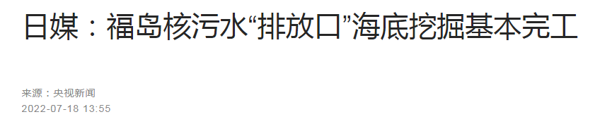 7月18日,日本共同社报道,在日本福岛第一核电站核污水将排放入海的近海1公里附近,东京电力公司已经基本完成了核污水“排放口”的海底挖掘施工