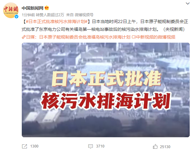 日本当地时间22日上午,日本原子能规制委员正式批准了东京电力公司有关福岛第一核电站事故后的核污染水排海计划。