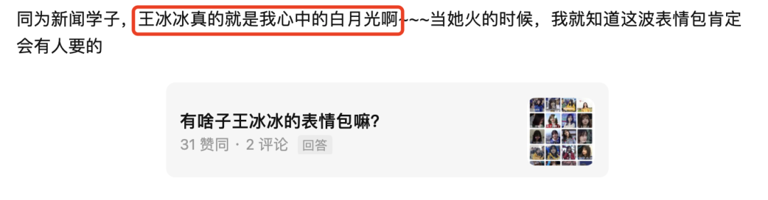 除了这些被网友所封的人设以外,很多网友对王冰冰开始有了超乎一般的喜欢。