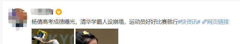 之后,杨倩被人爆出是以“体育特长生”的身份入学清华,不少网友就开始说杨倩的学霸人设塌了。