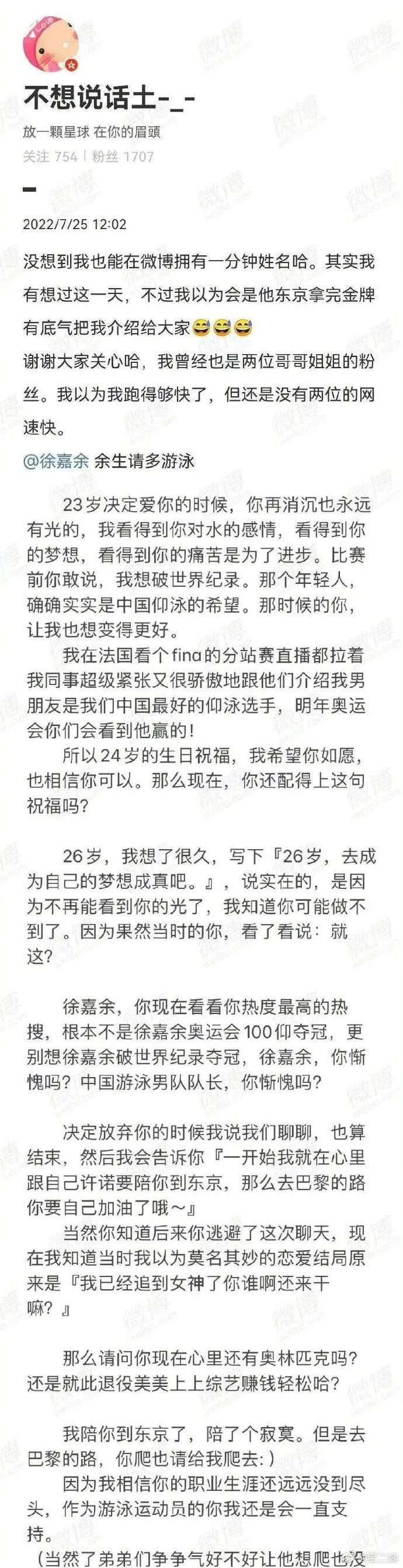 徐嘉余的正牌前女友“土土”突然发文痛斥徐嘉余出轨。