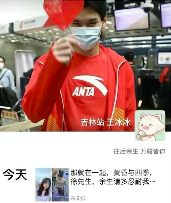7月20日那天,王冰冰和奥运会仰泳亚军徐嘉余暗戳戳地在双方朋友圈官宣恋情。