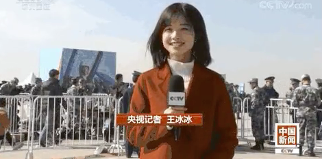 比如在报道建国70周年空军纪念展上,她从容淡定地采访着身边的军官。