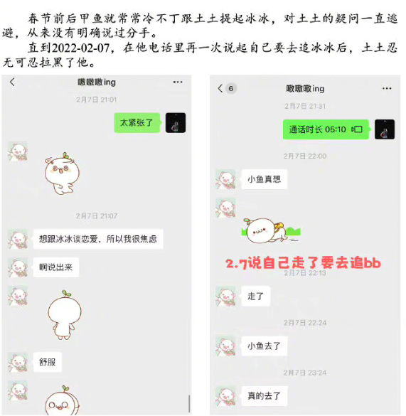 直到2月7日,徐明确表示自己“想和冰冰谈恋爱”了,土土当天将男生拉黑。