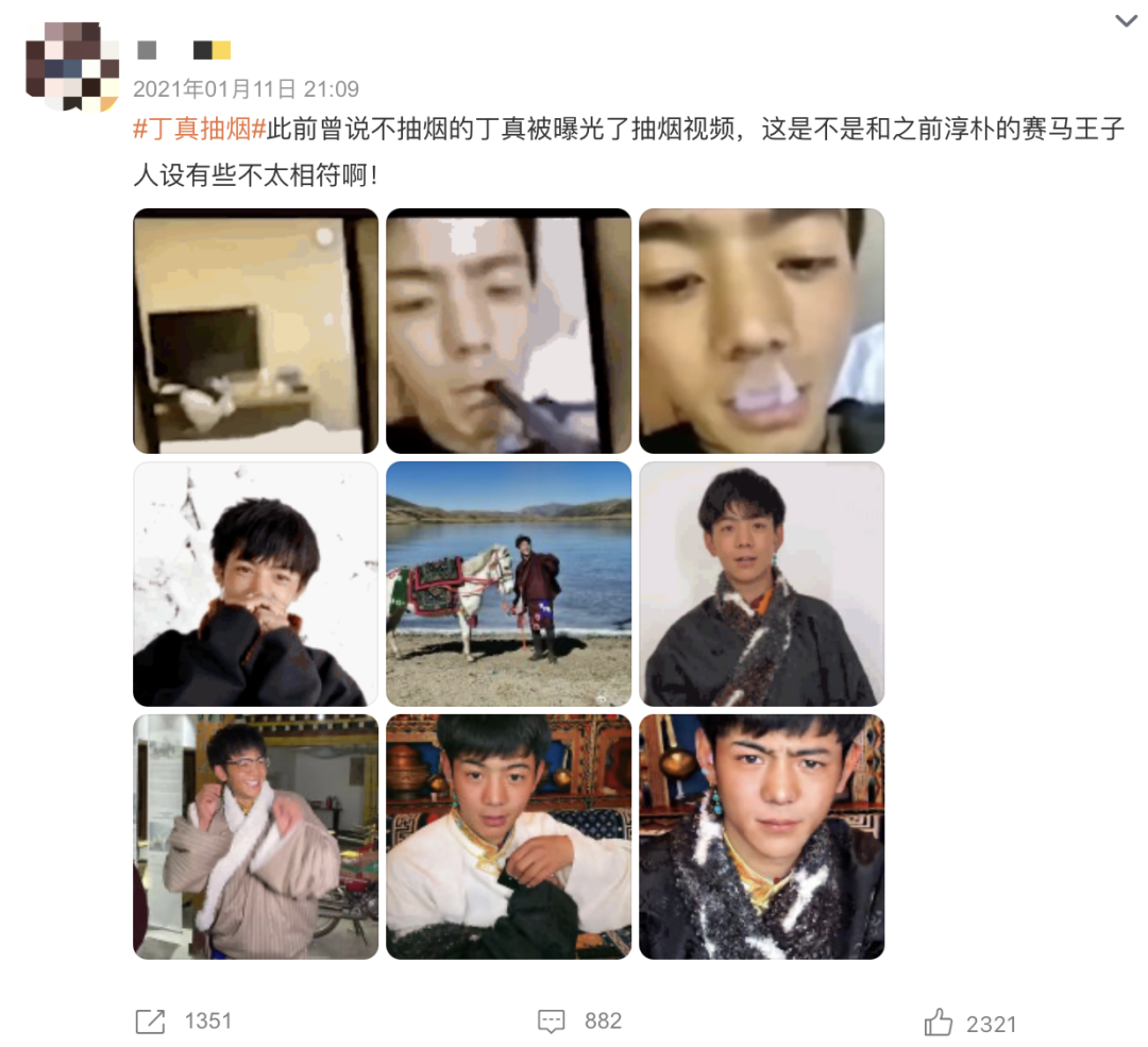 在爆红不久之后,2021年1月,丁真就被网友曝出抽烟视频。