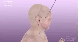 团队将供体完整的面部,包括前额、眉毛、耳朵、鼻子、眼睑、嘴唇「搬」到了迪梅奥的脸上,甚至还移植了部分颅骨、上颌骨、鼻骨、下颌骨等骨组织。