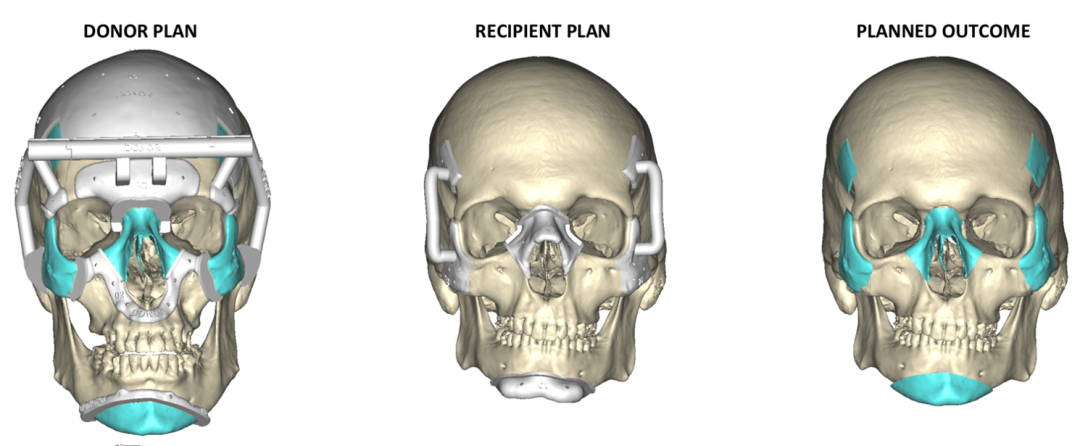 术前,医生先为捐献者和迪梅奥都进行了面部的 3D 颅面部 CT 扫描,分别模拟重建他们的颅面部,并给出定制的移植方案。