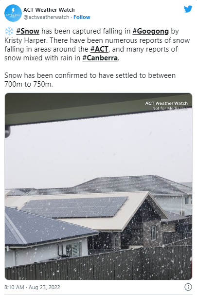 周二,Michelago和Googong出现降雪,据报道,堪培拉南部部分地区的雪与雨混合在一起。