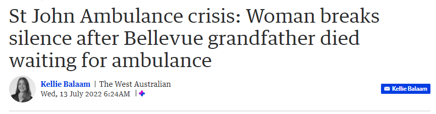 就在前不久,就有至少3名西澳人因长时间等不到救护车而死亡。