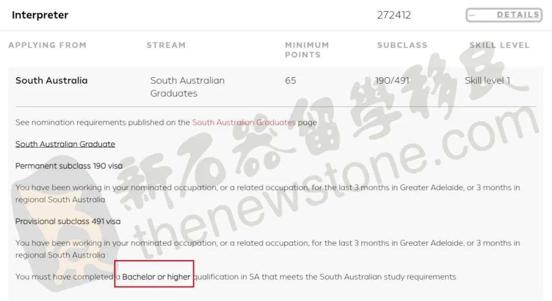 申请190/491另外需要满足:从事提名职业,且过去3个月在大阿德莱德地区工作,或者过去3个月在南澳偏远地区工作。