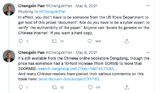 但尴尬的是,不少真正有脑子的学者,比如澳大利亚迪肯大学的国际关系副教授潘成鑫,就很快就发现波特为《澳大利亚人报》“验证”的“军方泄露文件”,不仅在中国网络上可以随处找到,而且还可以在中国的网上书店买到。