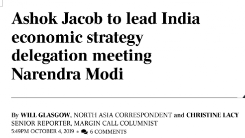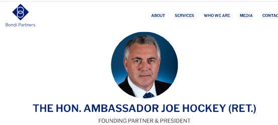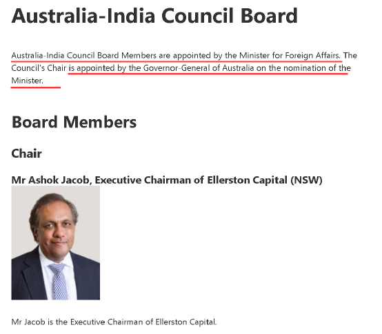创建“1941基金”的两家机构都“大有来头”。“邦迪合伙人”的创办者,是曾担任过澳大利亚财政部长和澳大利亚驻美大使的澳大利亚自由党籍政客乔·霍奇(Joe Hockey)。而“艾勒斯顿资本”的执行主席、澳大利亚印度裔商人阿肖克·雅克布(Ashok Jacob),也不是什么普通的商人,而是澳大利亚外交部下属的澳大利亚—印度理事会(Australia-India Council)董事会的主席。这个理事会的董事会成员不仅都需要澳大利亚外交部来任命,其主席更需要得到澳大利亚外交部长的提名。不仅如此,《澳大利亚人报》一篇2019年的报道还显示,澳大利亚时任总理莫里森曾亲自指派雅克布率领澳大利亚的商业代表团与他一起出访印度,由此可见此人还是澳大利亚推进其印度战略的一名要人。