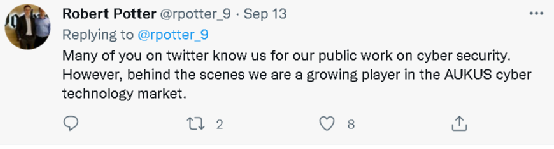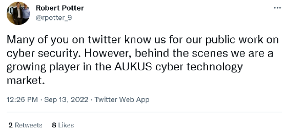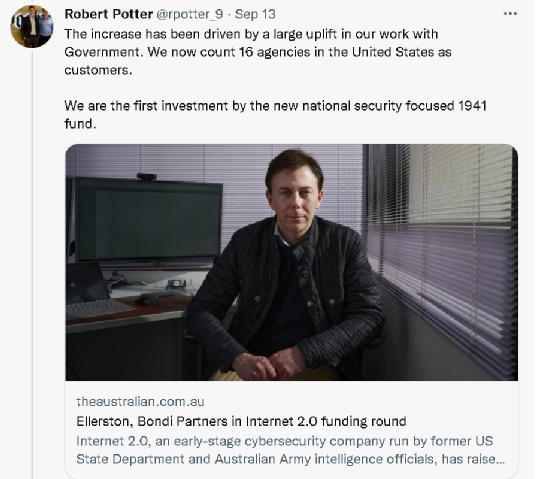 那么,“因特网2.0”会被这么一个与莫里森的自由党关系密切,又主推美英澳AUKUS“三边安全联盟”的“私募”基金看上,也就不令人意外了。波特也在完成此轮估值和融资后,在社交账号上发帖表示,他的“因特网2.0”实际上就是在围绕美英澳AUKUS“三边安全联盟”这个“市场”开展业务的。另外,来自“1941基金”创始机构“邦迪合伙人”的一名“资深顾问”——澳大利亚军方的退役少将菲格斯(格斯)麦克拉克兰(Gus McLachlan)——还在“因特网2.0”获得融资的同时加入了该“公司”的董事会。