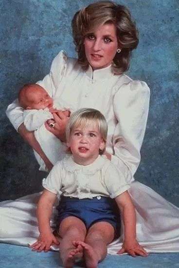 ● 前面的是哥哥威廉王子,戴安娜怀里抱着的是哈里王子