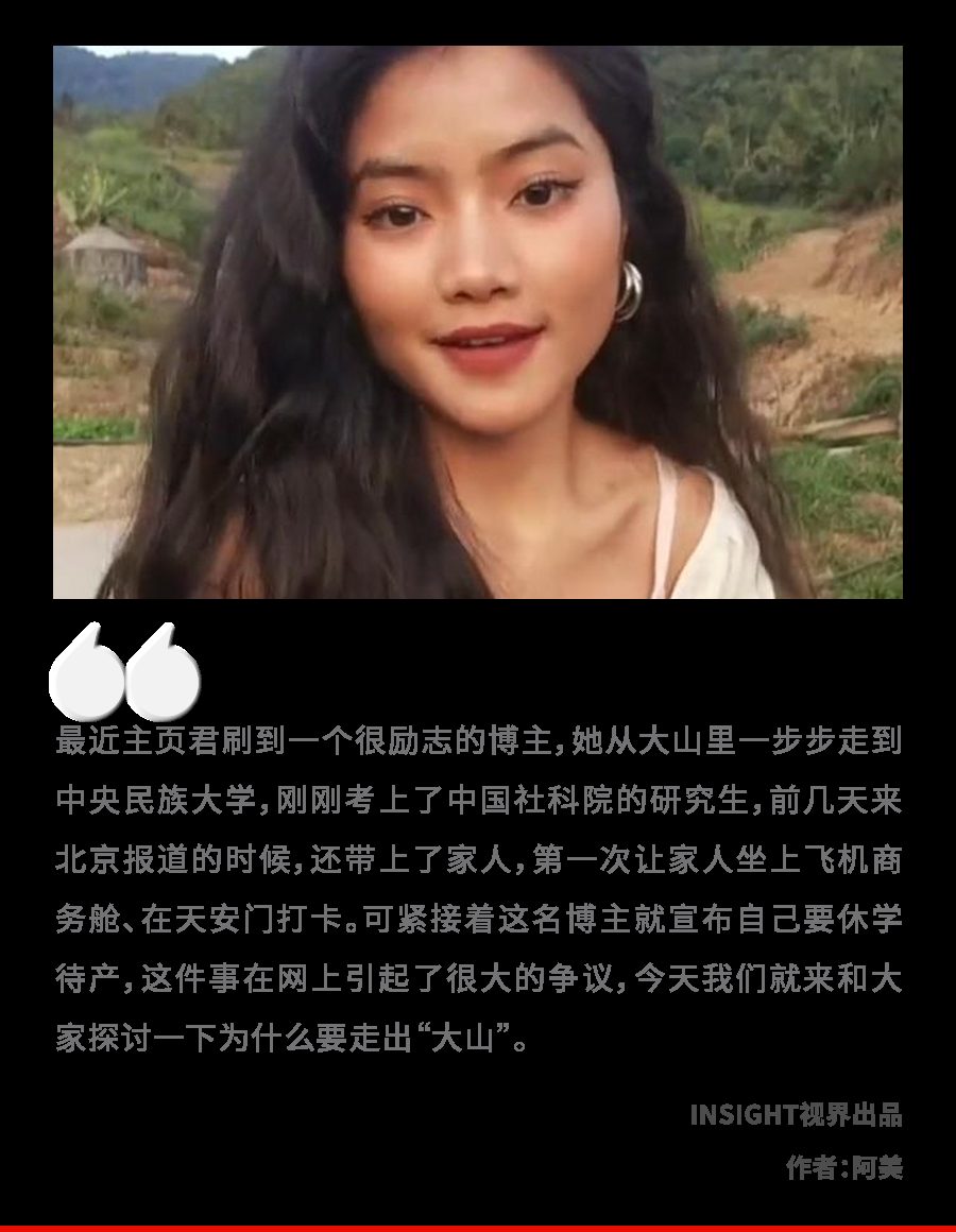 一个好不容易走出大山的女孩,来到北京读本科和硕士,未来可能成为民族文化研究上的中流砥柱,最后却还是嫁回了大山。