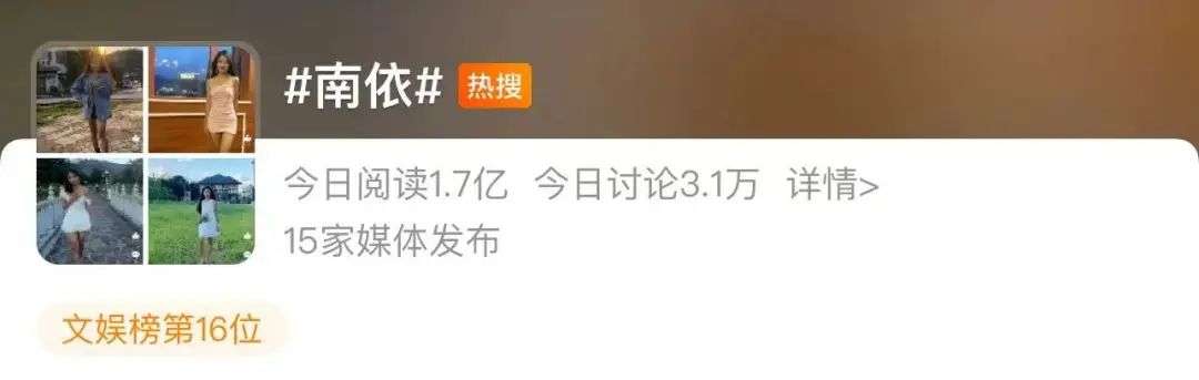 就在今天,小有名气的网红@南依 冲上热搜第一,阅读量1.7亿。