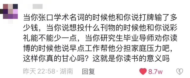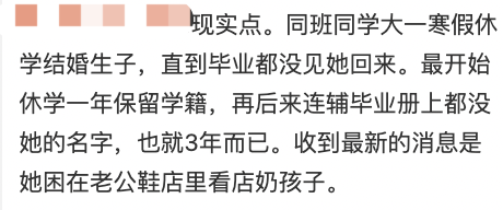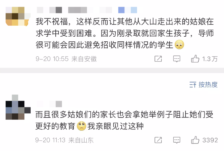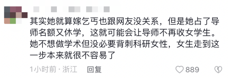 她休学又复学等于占了两个名额,这不仅是在占用学术资源,未来可能还会导致导师不愿意招女生,科研女性的上升道路会愈发狭窄,甚至是其他大山里的女孩也被会波及。