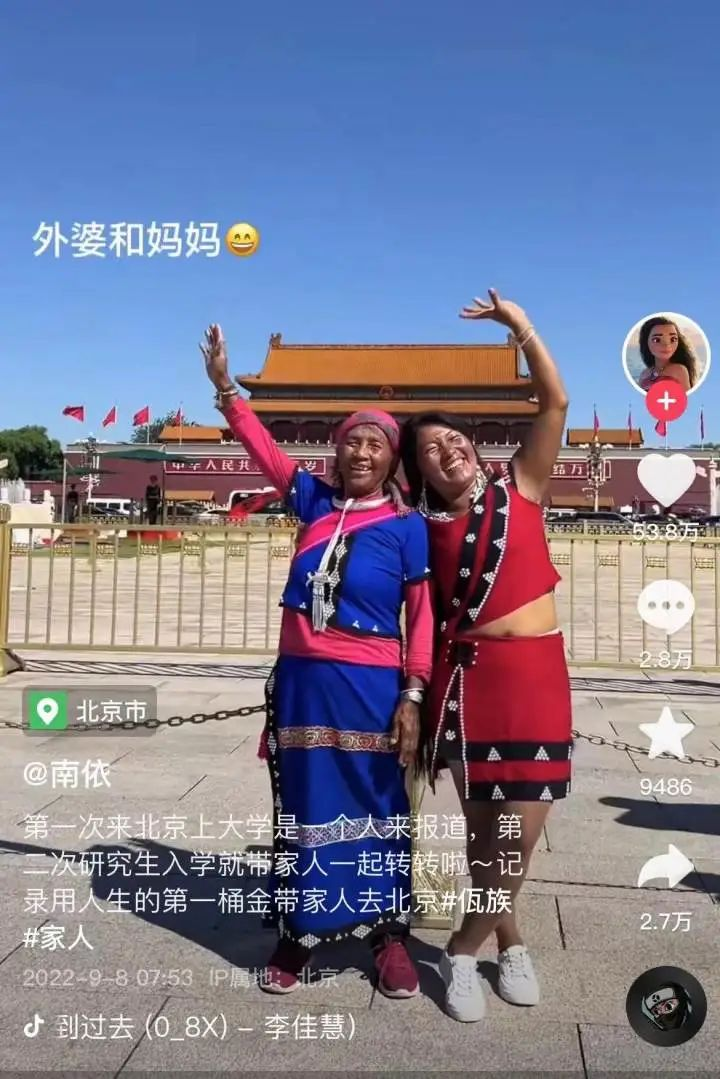 课余时间南依还会运营自己的账号,前几天她用做自媒体赚的第一桶金带着家人坐上了飞机商务舱,一行人还去到了天安门广场前打卡。