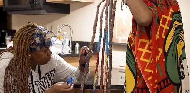 由于过程漫长,她无法在美甲店完成,只能找身边的人帮她涂。