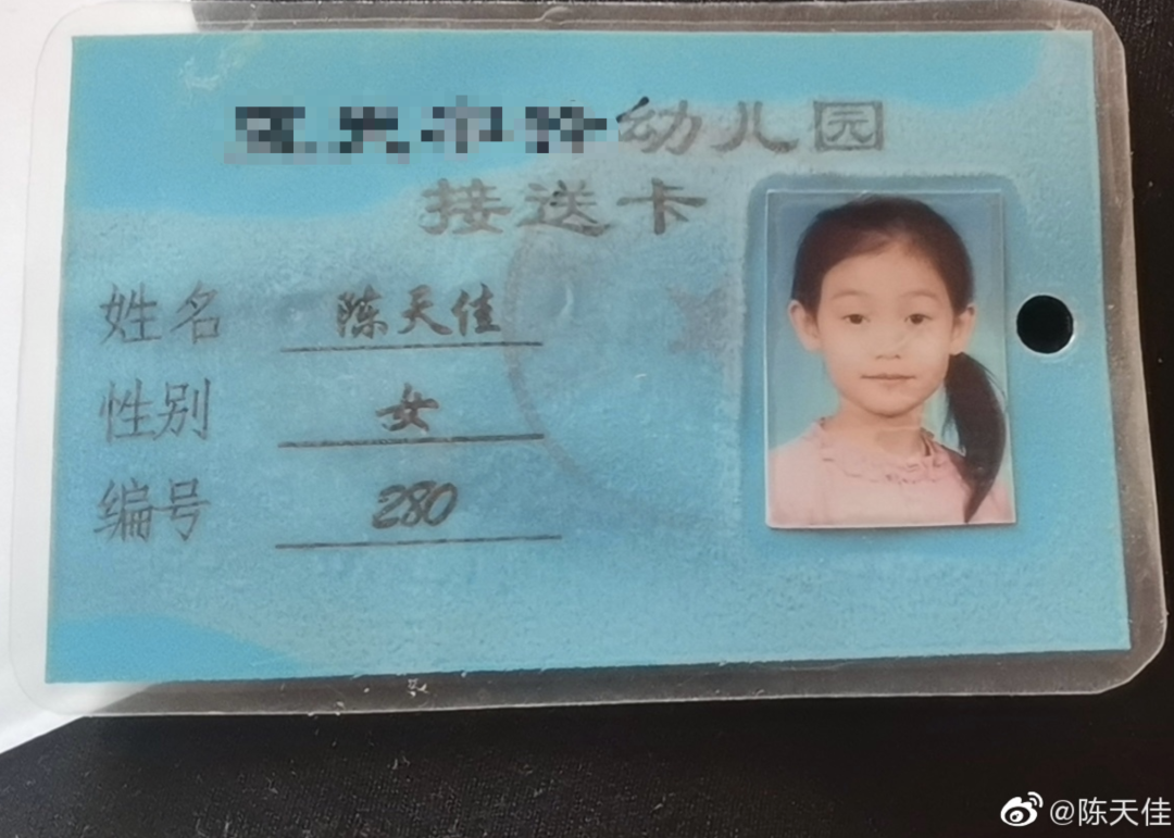 由于父母工作忙碌,陈天佳两岁时就被送到幼儿园“长托”,平常只能在周五晚上被父母接回去共度周末。