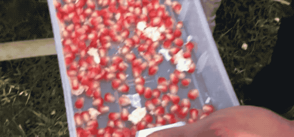 石榴籽粒粒分明,掺杂着些白色囊衣。这俩密度不同,之后一起放入水中,白色囊衣就会浮起来,一捞就做到了分离~