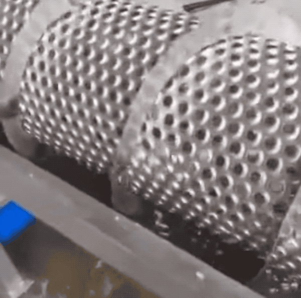 这种石榴籽流水线,后续还会些喷淋、浸水去除囊衣、装盒等步骤,在这里就不一一细说了~现在介绍一种和上面的敲打、压拍不同的取籽方式,更简单粗暴的机器!但工厂使用率非常高。