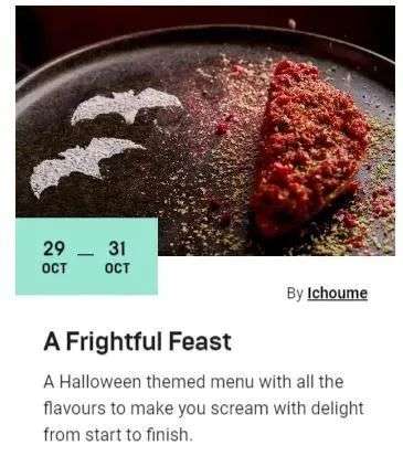 情人港附近的各家餐厅都推出了万圣节恐怖主题美食——化身为小蝙蝠的fine dining
