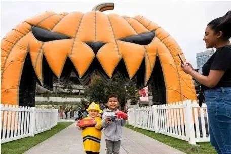 巨型南瓜蝙蝠拱门下拍张合照