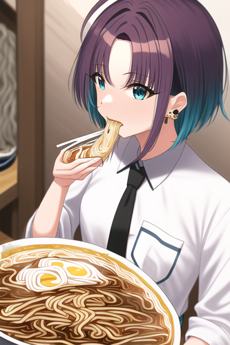 最离谱的应该是这张,让AI画美少女吃面,没想到画出了面条炖美少女。