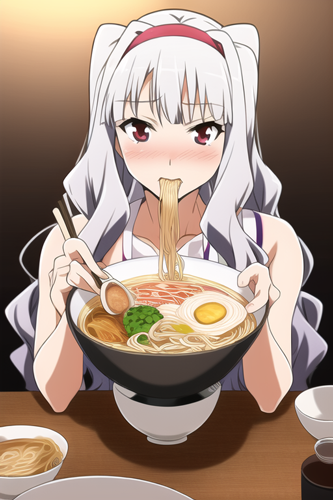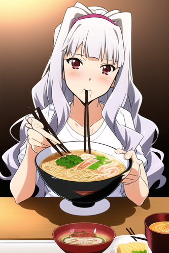 已经逐渐能够习惯美少女捧着拉面吃筷子的场面了,就像是在吃饼干。
