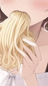 例如下图,妹子倒是画得很可爱,就是这吃相有点奇怪,用手抓着面条往嘴里塞。