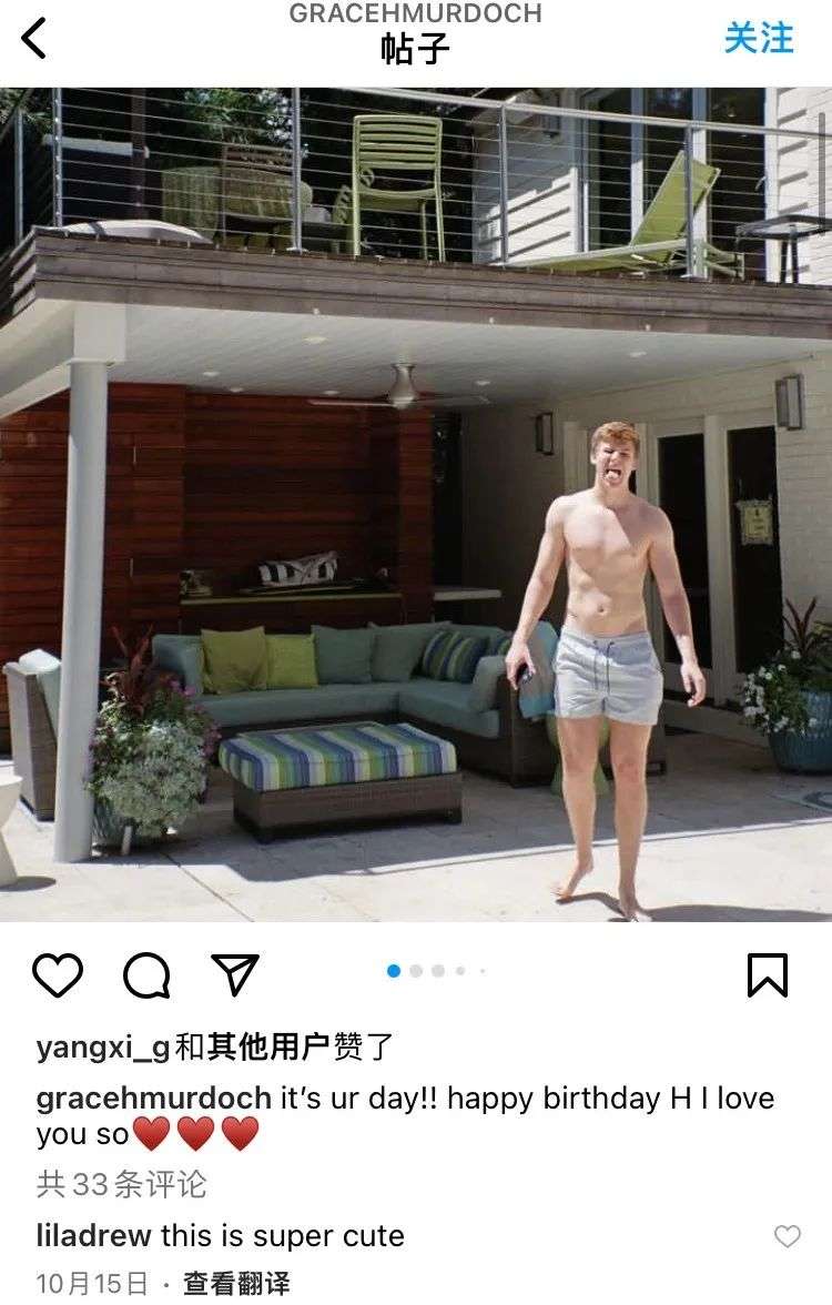 上个月格蕾丝发布帖子为男友庆生,“今天是你的日子,生日快乐,我爱你啊”,并晒出男友赤裸上身的泳照。