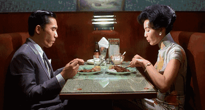 记得《花样年华》里一个经典场景,周慕云和苏丽珍吃牛排,周慕云略显散漫地使着刀叉切牛排,旗袍加身的苏丽珍虽然端坐在椅子上,却更加急迫地把牛排往嘴里送,刀叉碰撞之间,分明心虚。她问:“今天为什么打电话来我公司?” 他抬眼:“我只是想听听你的声音。”