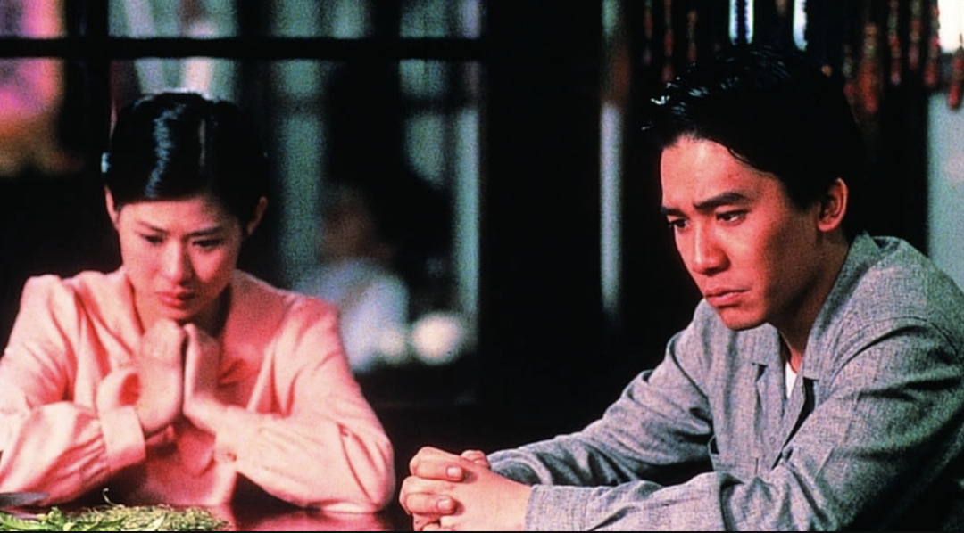 刀叉在空气中停住,假戏真做,他追,她逃,然而她也不是不心动。虽然影片中一路含蓄到了最尾,周慕云至死都没讲出一句“我爱你”,只说 “如果多一张船票,你会不会跟我一起走?”但在那间餐厅里,在香港特有的豉油西餐里,暧昧被推到了顶点,东方式性感溢出银幕。
