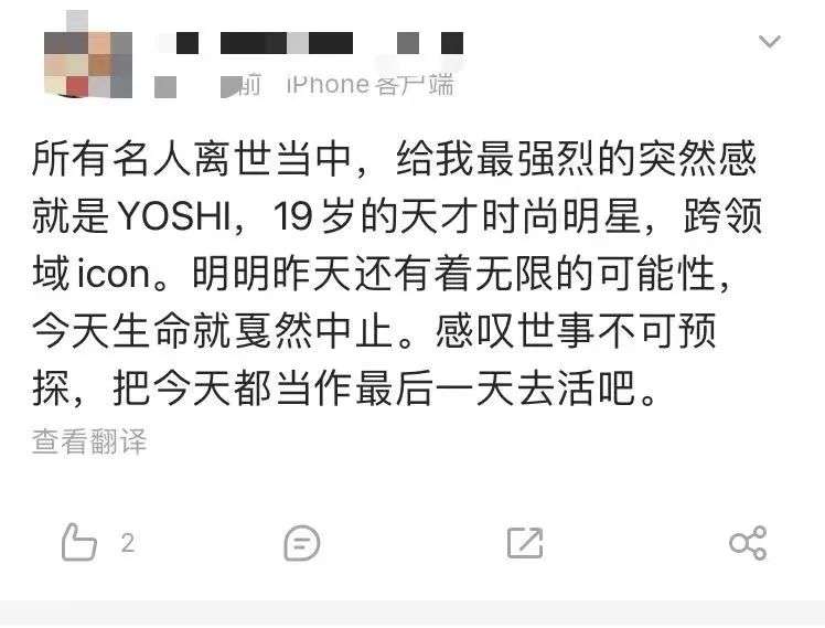 同样也有日本网友对YOSHI去世的消息表示不敢相信,觉得如此才华横溢的年轻人就这样离世确实可惜。