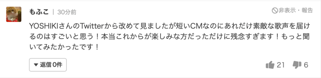 重新看了YOSHIKI(音乐制作人)推特上发的广告片,短短的影片中佐佐木的歌声令人称赞!他本应是大有前途的人,实在是太遗憾了!