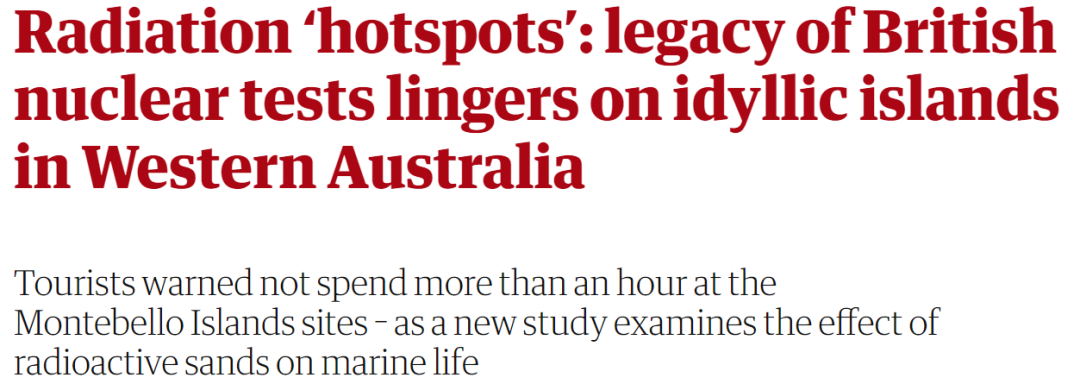 一项研究表明,澳洲曾被用作核试验场70年后的一个群岛,现在仍存在核辐射风险,地点就是位于西澳海岸120公里外的Montebello Islands,