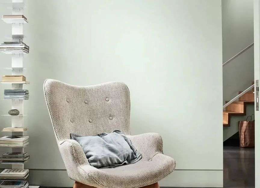 清新自然的曙光青,真的很适合作为墙面色。这个颜色也能搭配不同的颜色,营造出或宁静、或活泼的家庭氛围。
