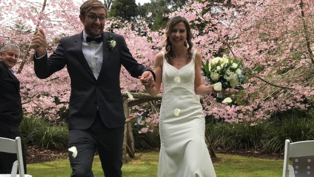 2021年10月,奥克兰人Emma和Tom Hunt举办婚礼,来的人不到10人,两人通过Zoom直播给其他亲友: