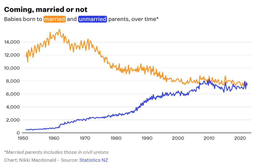 史上首次,新西兰未婚父母所生婴儿的数量,超过了已婚父母所生婴儿的数量。