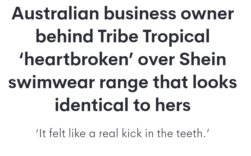 “热带部落”(Tribe Tropical)背后的澳大利亚老板“心要碎”了,因为Shein泳装系列竟和她家的设计一模一样!