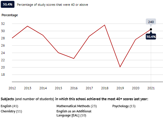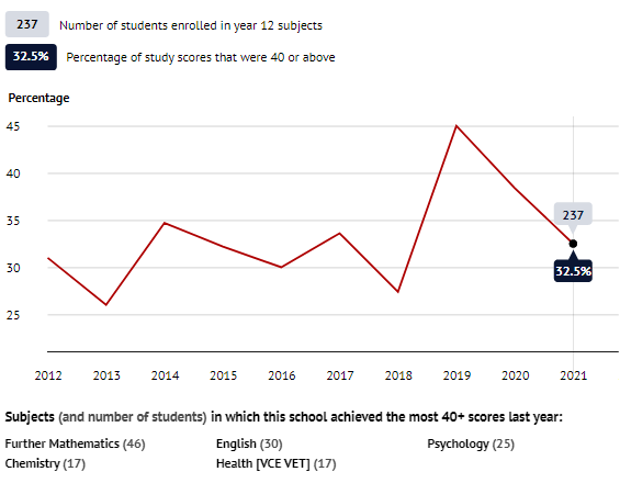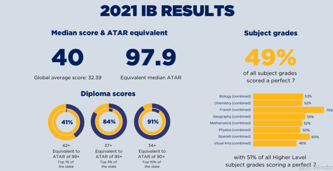 该校还是维州最早开设IB课程的学校之一,去年成绩如下所示: