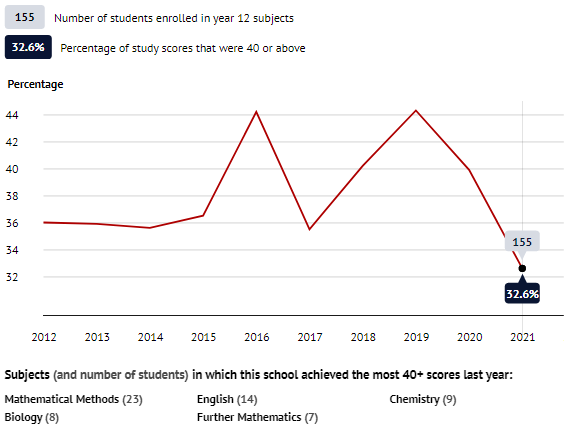 作为维州唯一的精英女校,该校的成绩历来年稳居前列,今年也不例外,它是维州公立学校中排名第一的学校。