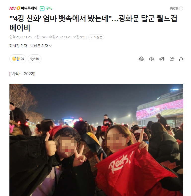 昨日晚,为了给2022卡塔尔世界杯韩国队加油助威,首尔2.6万多名市民聚集在了首尔钟路区光化门广场。虽然最终韩国与乌拉圭以0比0的比分打平,但市民们对此场比赛韩国运动员们的竞技水平好评如潮。