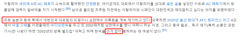 尽管如此,韩国依然不承认贿赂裁判是事实,还在维基百科中写道“这是中日两国毫无根据的抹黑”。