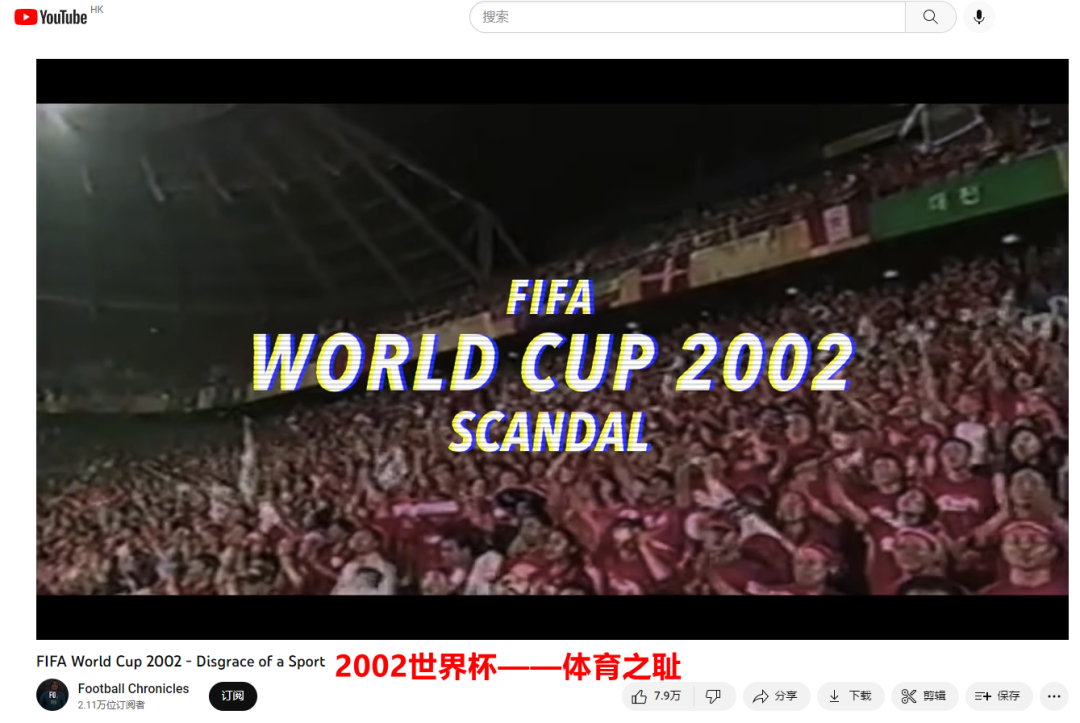 这段视频很好地突出了争议:2002年国际足联世界杯——一项运动的耻辱。