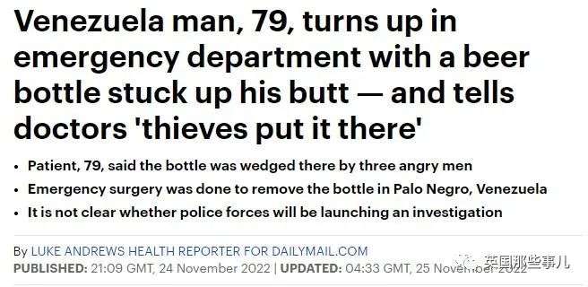 大爷屁股卡酒瓶就诊,称遭遇小偷