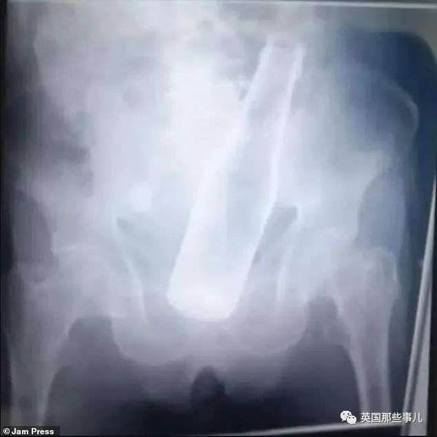 医生检查后发现,原来是有个啤酒瓶卡在大爷的体内。
