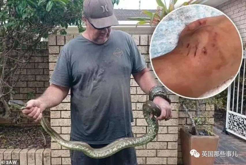 一条3米长的蟒蛇潜伏在花园的灌木丛里,当Beau在游泳池边溜达时,蟒蛇找准时机偷袭了他。
